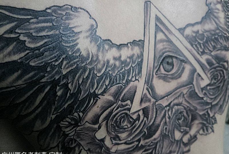 订制上帝之眼翅膀纹身图片_背部欧美传统写实原创广州翅膀上帝之眼成品纹身图案