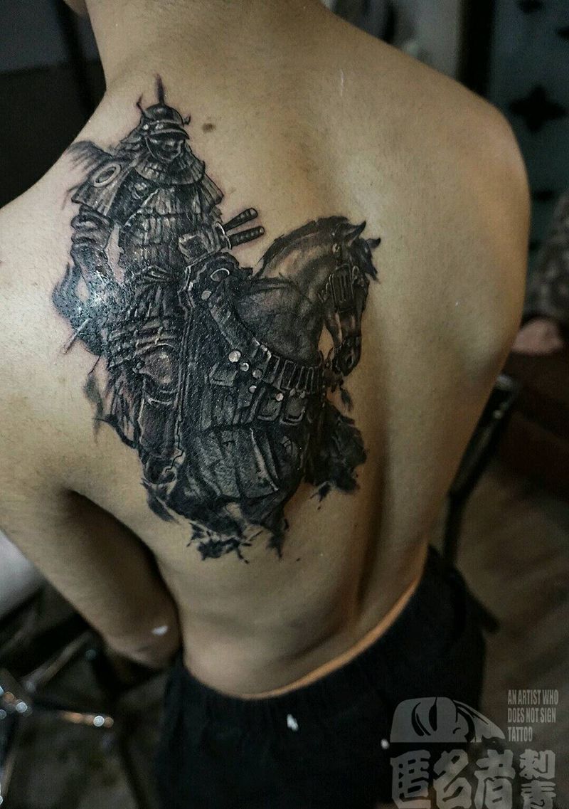 覆盖作品 武士纹身图片_背部传统肖像写实动物人物广州覆盖成品纹身图案