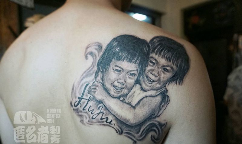 当前位置: 首页 >广东省广州市纹身店-广州匿名者刺青纹身图案>双胞胎姐妹写实肖像纹身图片_背部肖像写实人物广州匿名者纹身图案