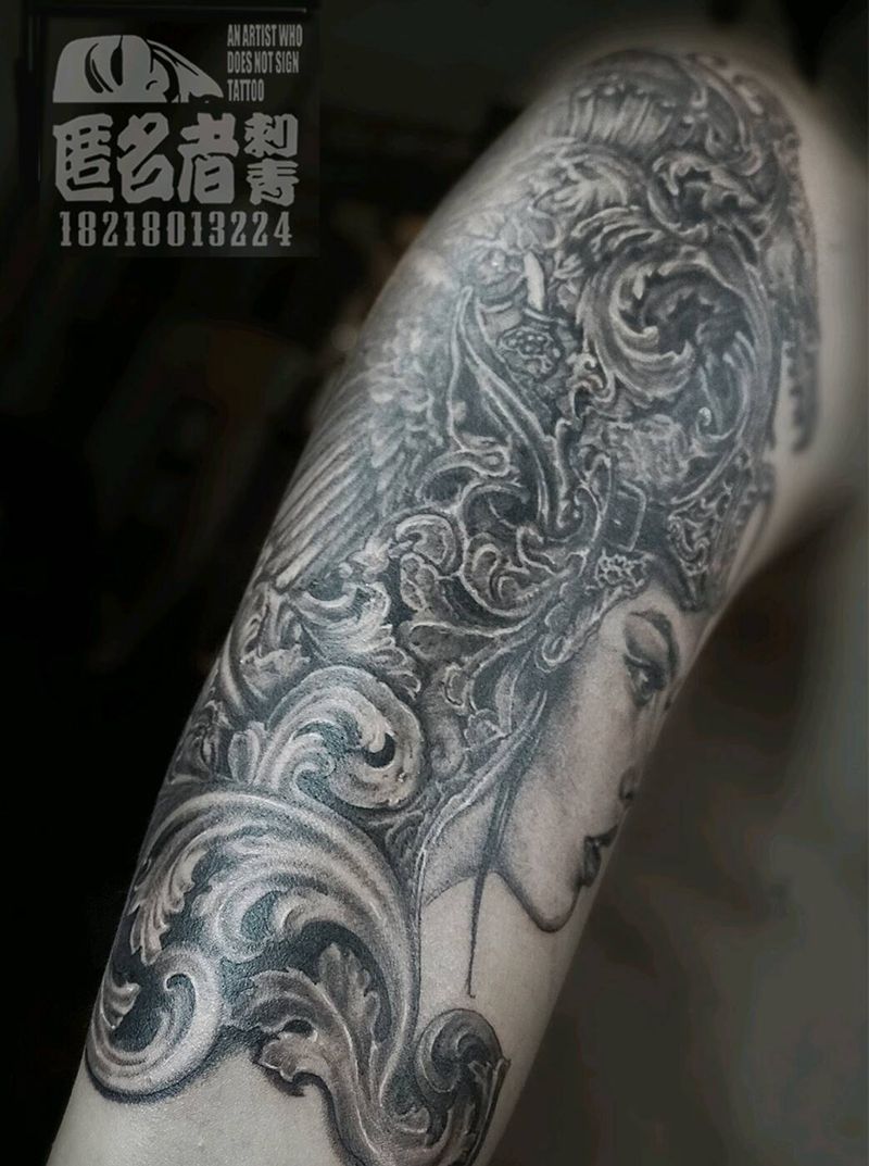 浮夸 冷艳纹身图片_肩部手臂欧美写实人物宗教原创广州匿名者成品纹身图案