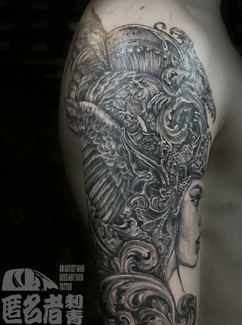 浮夸 冷艳纹身图片_肩部手臂欧美写实人物宗教原创广州匿名者成品纹身图案