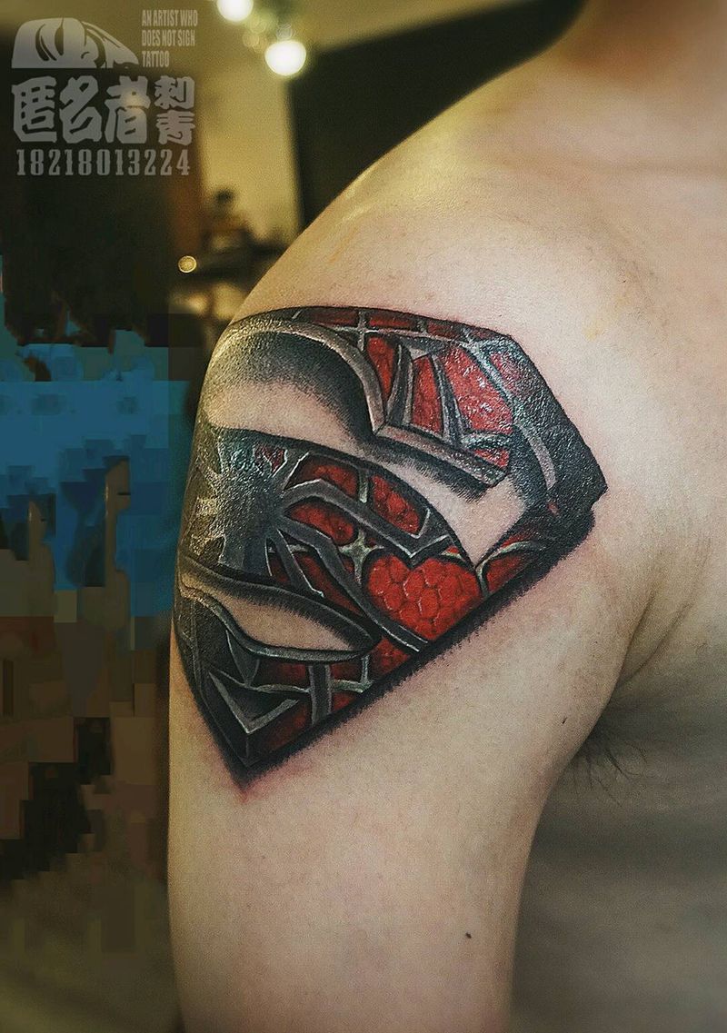 彩色写实 合体超人蜘蛛侠纹身图片_手臂欧美写实人物图腾原创广州成品纹身图案