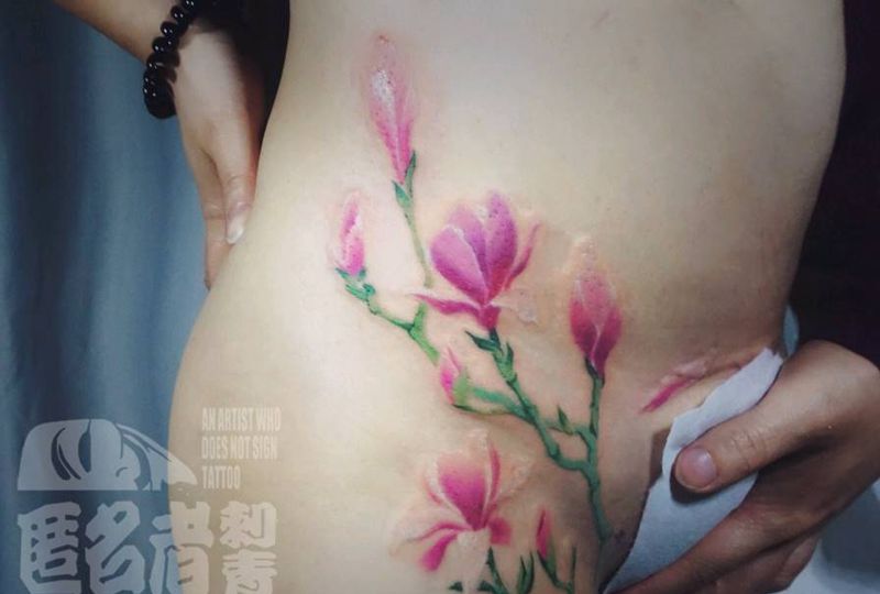 当前位置: 首页 >广东省广州市纹身店-广州匿名者刺青纹身图案>疤痕遮盖 水彩花儿纹身图片_腹部腰部欧美清新写实国画植物原创成品纹身图案