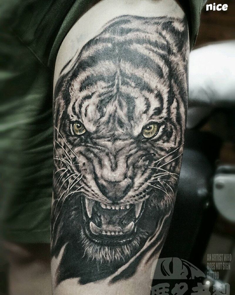 当前位置: 首页 >广东省广州市纹身店-广州匿名者刺青纹身图案>写实老虎纹身图片_腿部写实动物原创广州成品纹身图案