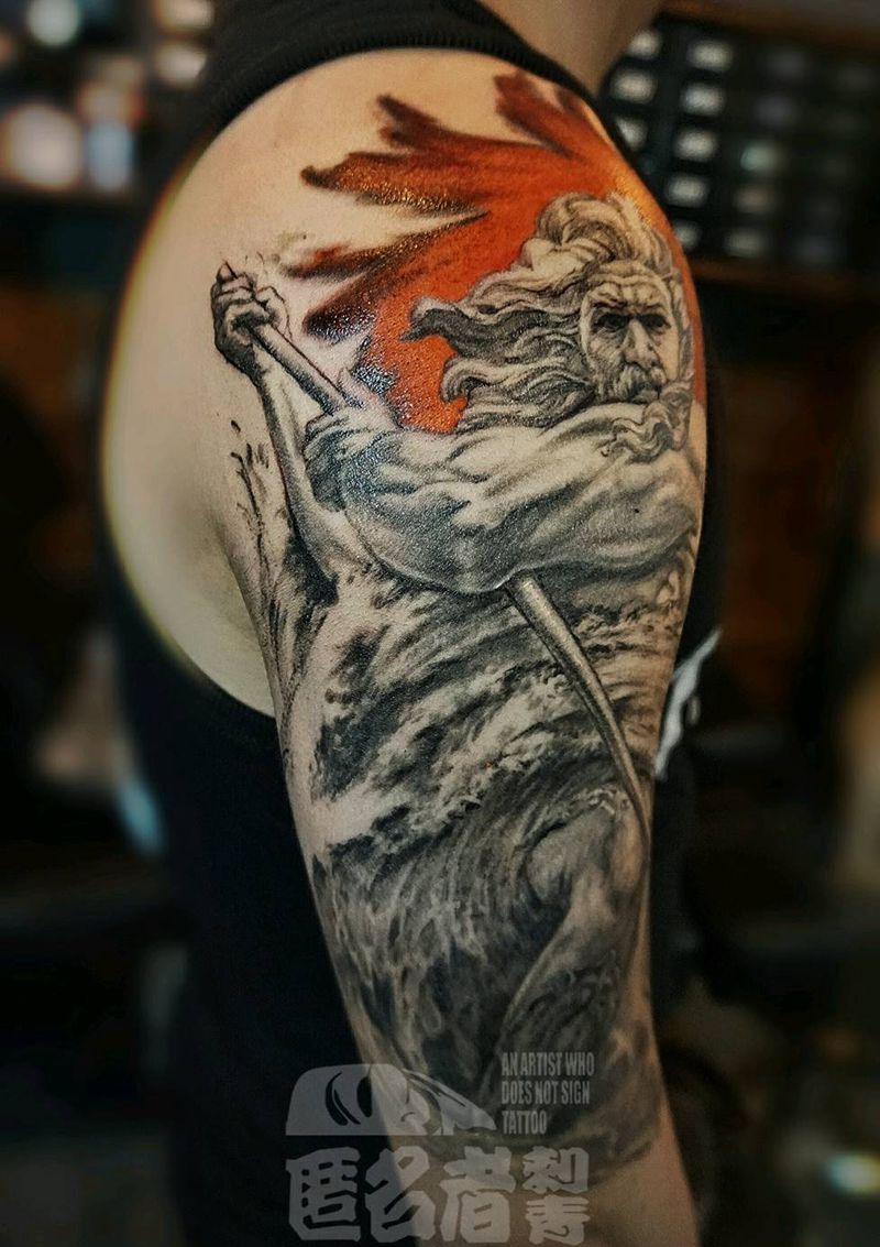 当前位置: 首页 >广东省广州市纹身店-广州匿名者刺青纹身图案>波塞冬纹身图片_肩部手臂欧美写实波塞冬纹身图案