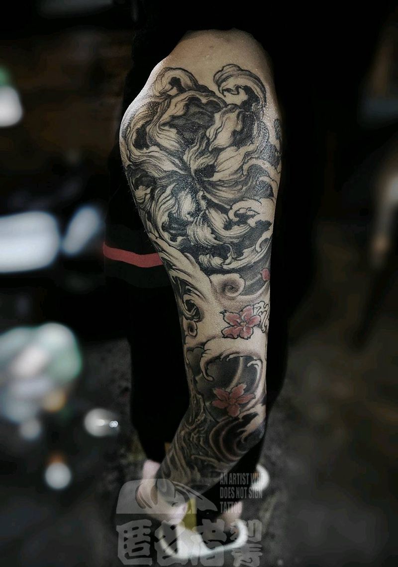 当前位置: 首页 >广东省广州市纹身店-广州匿名者刺青纹身图案>传统 花浪纹身图片_手臂传统国画植物成品纹身图案