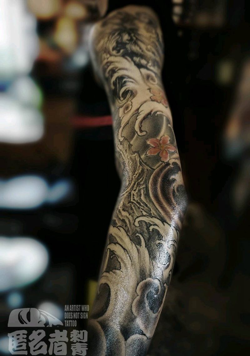 当前位置: 首页 >广东省广州市纹身店-广州匿名者刺青纹身图案>传统 花浪纹身图片_手臂传统国画植物成品纹身图案