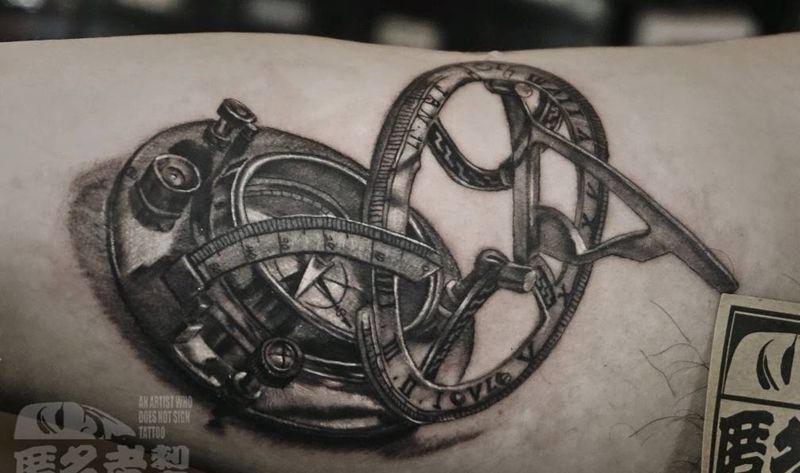当前位置: 首页 >广东省广州市纹身店-广州匿名者刺青纹身图案>航海指南针纹身图片_手臂欧美写实静物原创成品纹身图案
