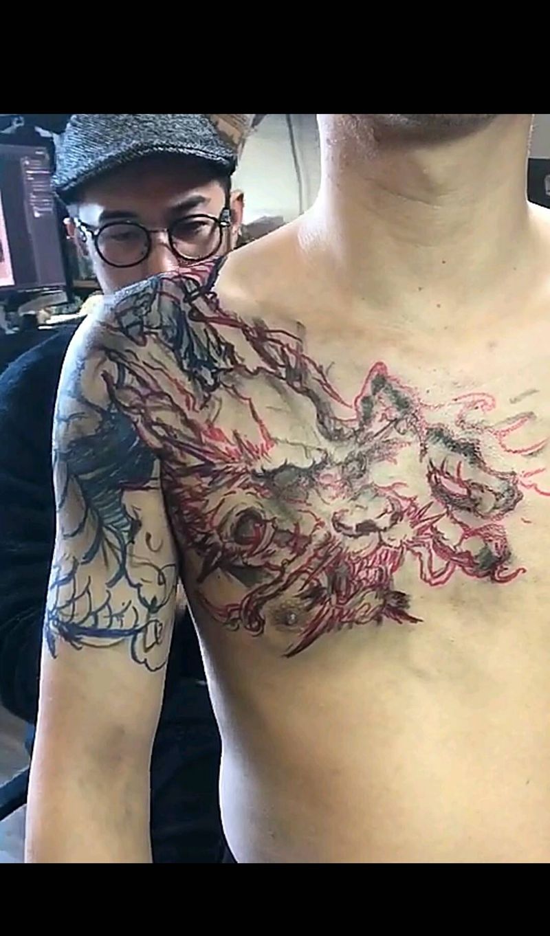 当前位置: 首页 >广东省广州市纹身店-广州匿名者刺青纹身图案>黑灰传统 龙儿纹身图片_肩部背部手臂传统动物鬼神原创广州匿名者成品纹身图案