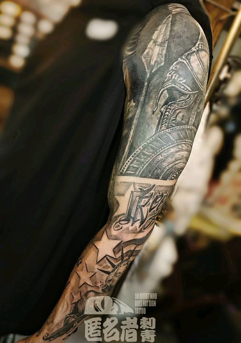 当前位置: 首页 >广东省广州市纹身店-广州匿名者刺青纹身图案>美风 包臂,大臂覆盖纹身图片_手臂肩部欧美写实战士自由女神欧美包臂纹身图案