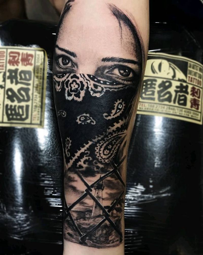当前位置: 首页 >广东省广州市纹身店-广州匿名者刺青纹身图案>写实纹身图片_手臂欧美写实肖像花臂风景纹身图案