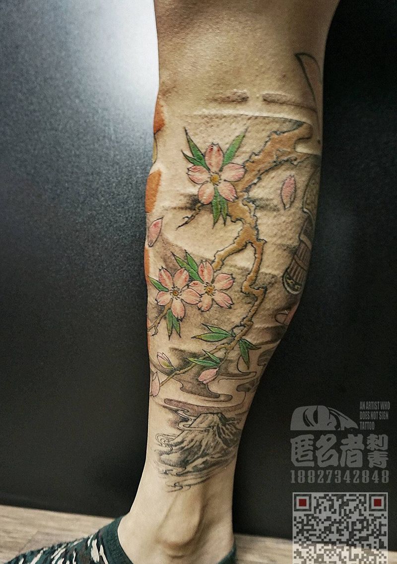 • T网红王老大花腿龙纹身图片_腿部新传统纹身图案