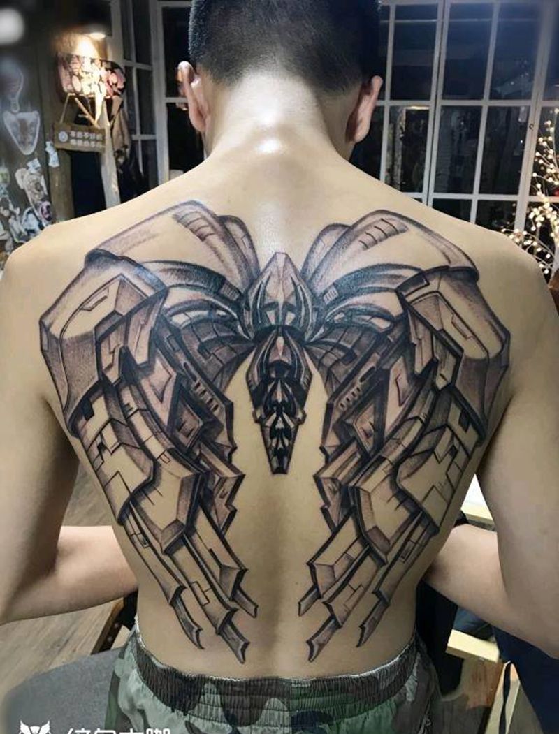 图腾遮盖,机械翅膀纹身图片_背部欧美写实翅膀满背机械纹身图案