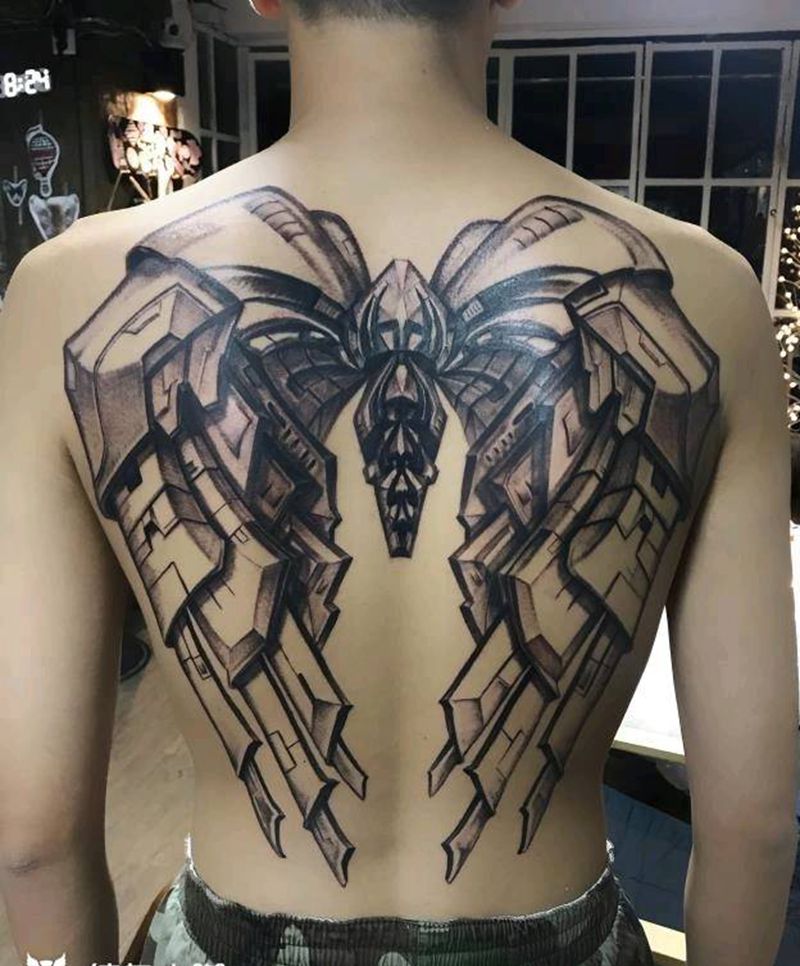 黑灰满背纹身图案