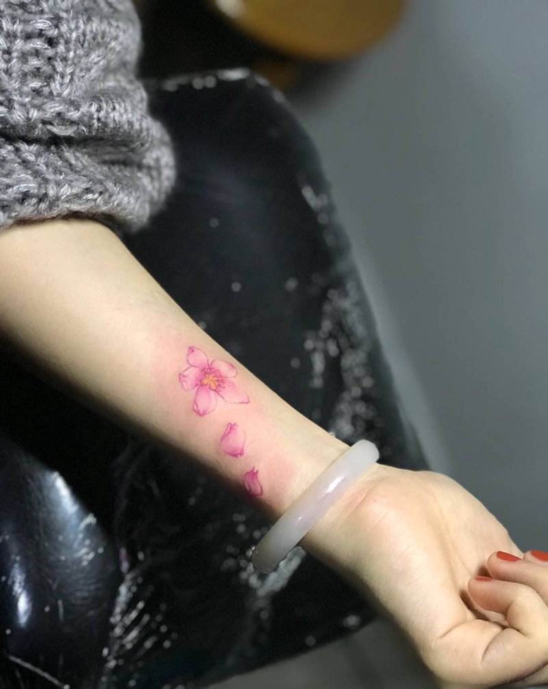 当前位置: 首页 >广东省广州市纹身店-广州匿名者刺青纹身图案>桃花纹身图片_手臂清新植物原创成品纹身图案