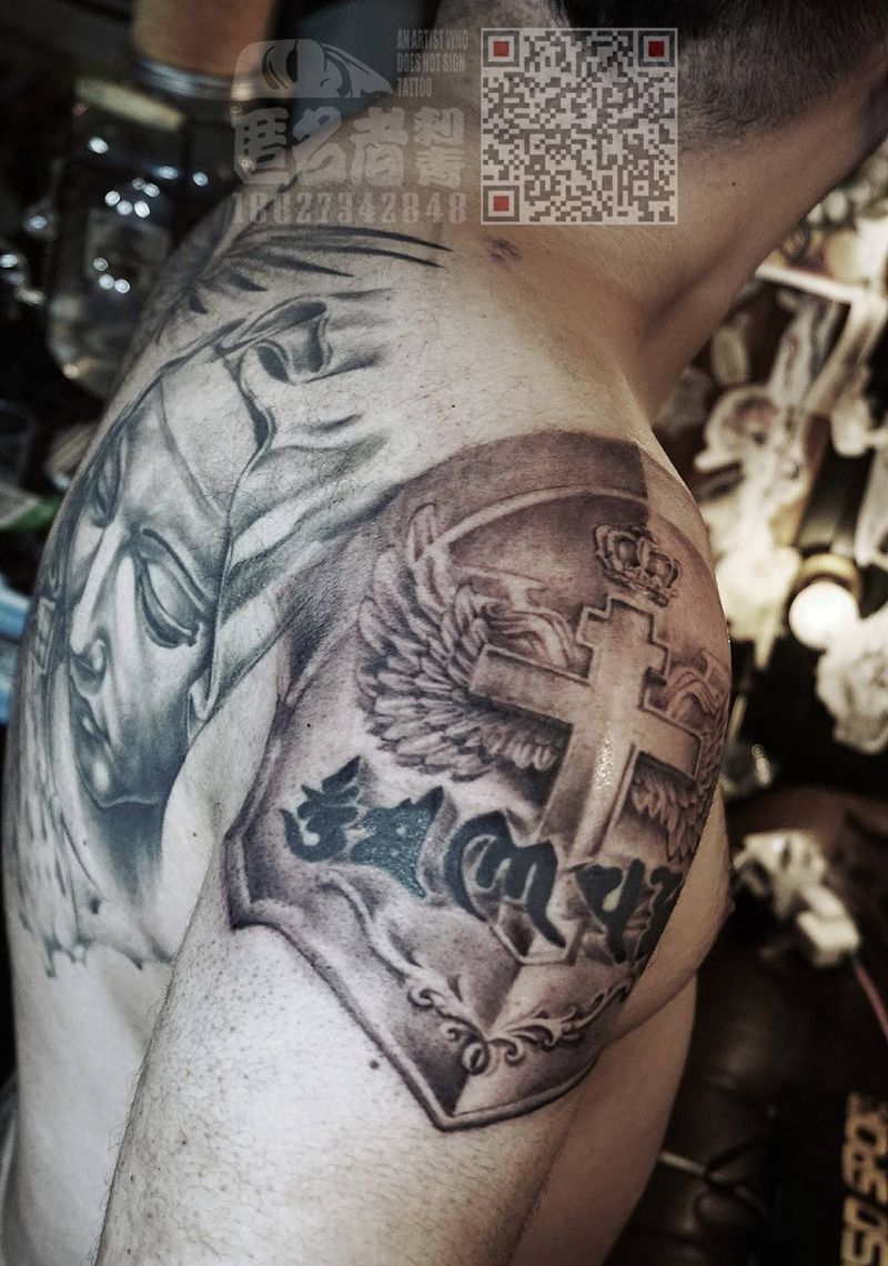 当前位置: 首页 >广东省广州市纹身店-广州匿名者刺青纹身图案>肩甲纹身图片_肩部欧美写实肩甲纹身图案