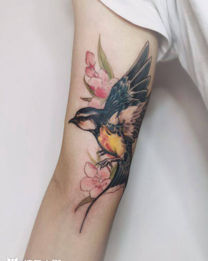 中国风燕子纹身图片_手臂新传统水墨纹身图案
