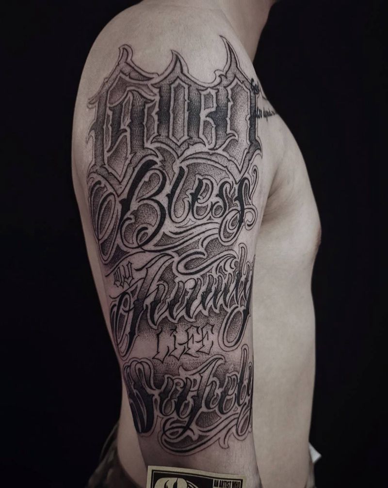 花体字纹身图片_手臂欧美写实花体字纹身图案
