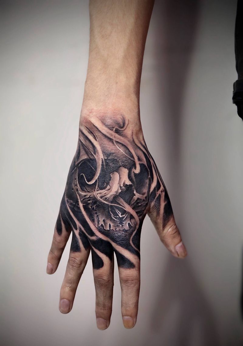 当前位置: 首页 >广东省广州市纹身店-皓龙纹身工作室纹身图案>骷髅纹身图片_手部手臂欧美写实写实骷髅头手背纹身图案