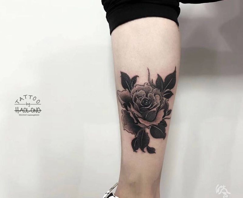当前位置: 首页 >广东省广州市纹身店-皓龙纹身工作室纹身图案>玫瑰花纹身图片_腿部点刺花玫瑰纹身图案