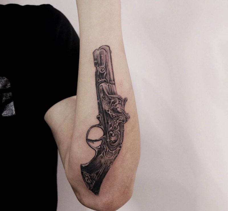 复古枪纹身图片_手部手臂欧美写实枪手枪纹身图案