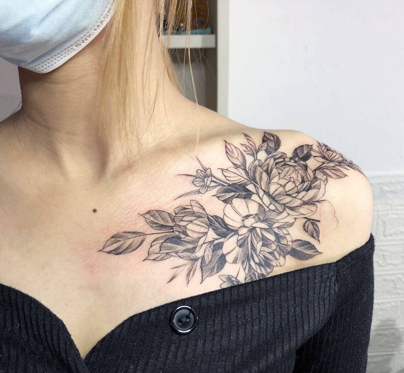• 女性大花胸纹身_43张霸气漂亮的女性大花胸纹身图案作品