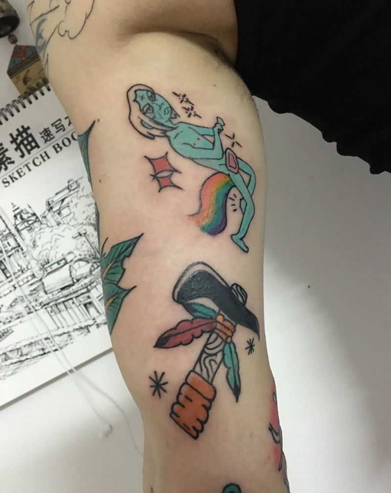 • T网红王老大花腿龙纹身图片_腿部新传统纹身图案