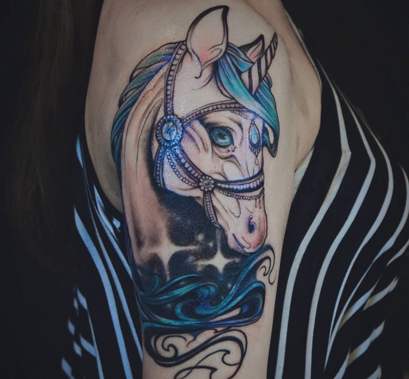 独角兽纹身图片_手臂New School遮盖独角兽纹身图案