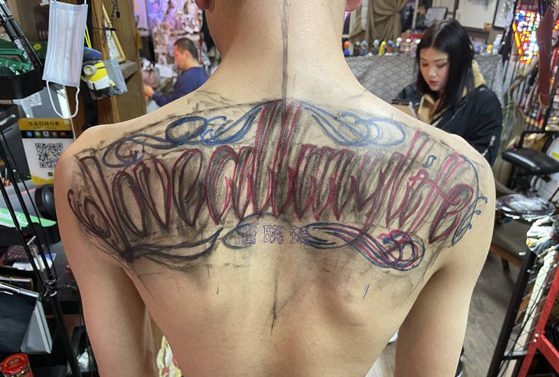 当前位置: 首页 >广东省广州市纹身店-广州匿名者刺青纹身图案>花体字纹身图片_背部花体字纹身图案