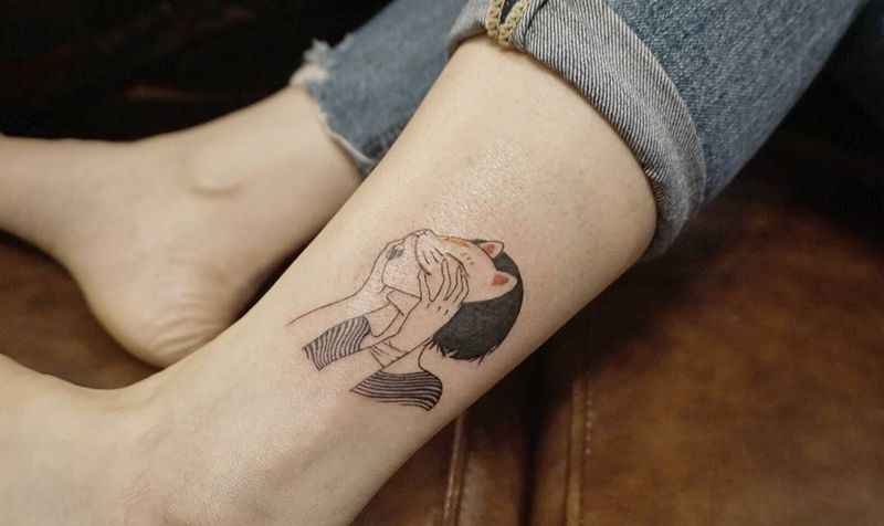狐狸面具女纹身图片_腿部脚部纹身图案