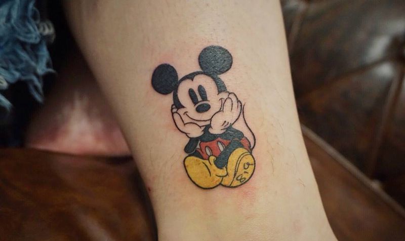 脚踝米奇纹身图片_腿部脚部纹身图案