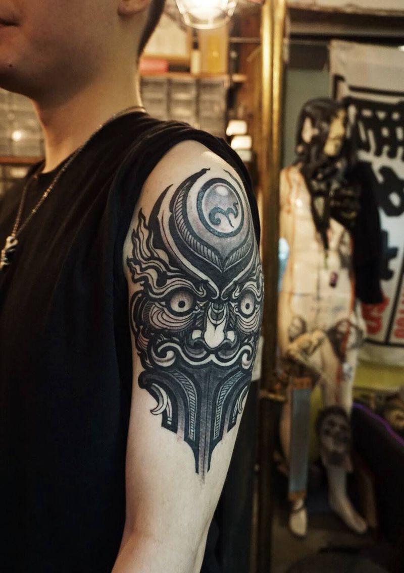 当前位置: 首页 >广东省广州市纹身店-广州匿名者刺青纹身图案>硬汉 图腾面具纹身图片