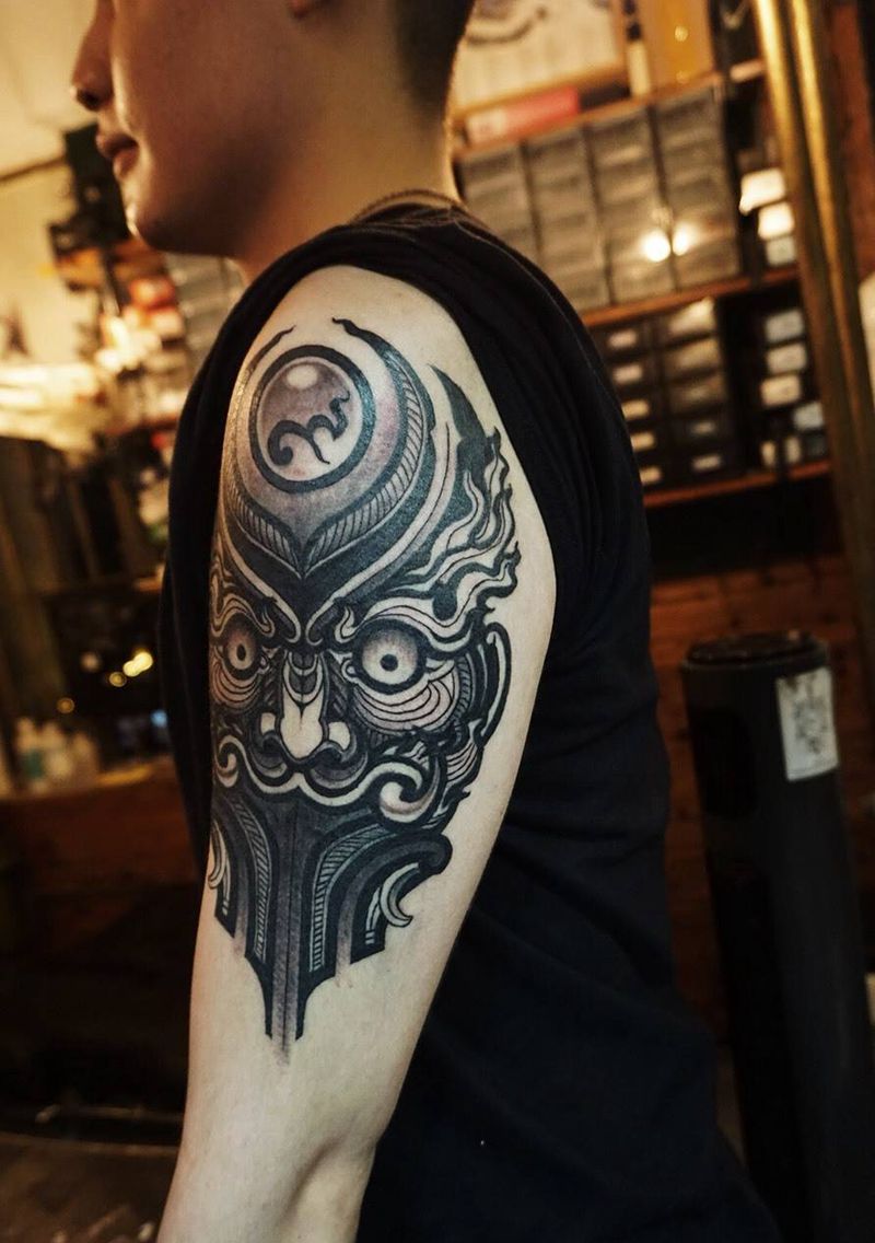 当前位置: 首页 >广东省广州市纹身店-广州匿名者刺青纹身图案>硬汉 图腾面具纹身图片