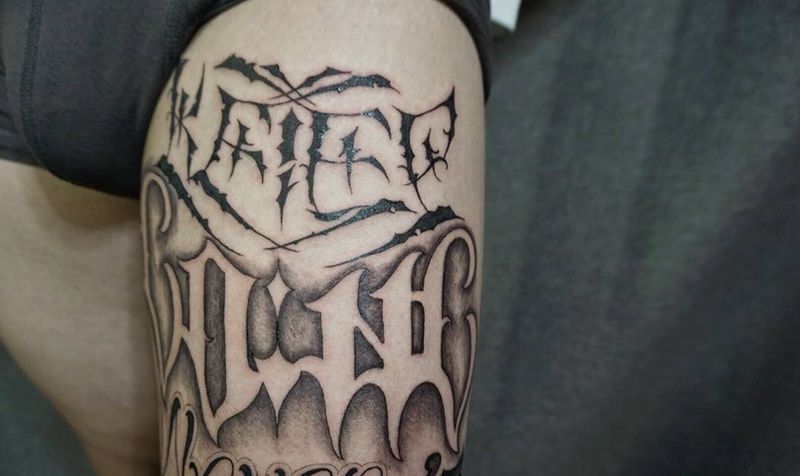 当前位置: 首页 >广东省广州市纹身店-广州匿名者刺青纹身图案>大腿 花体字纹身图片