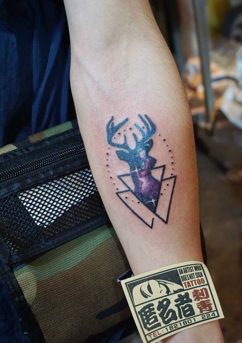 当前位置: 首页 >广东省广州市纹身店-广州匿名者刺青纹身图案>星空 鹿纹身图片