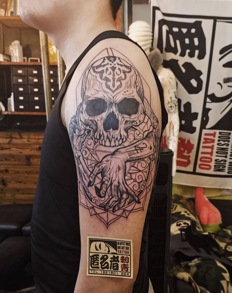 当前位置: 首页 >广东省广州市纹身店-广州匿名者刺青纹身图案>大臂 几何 骷髅纹身图片