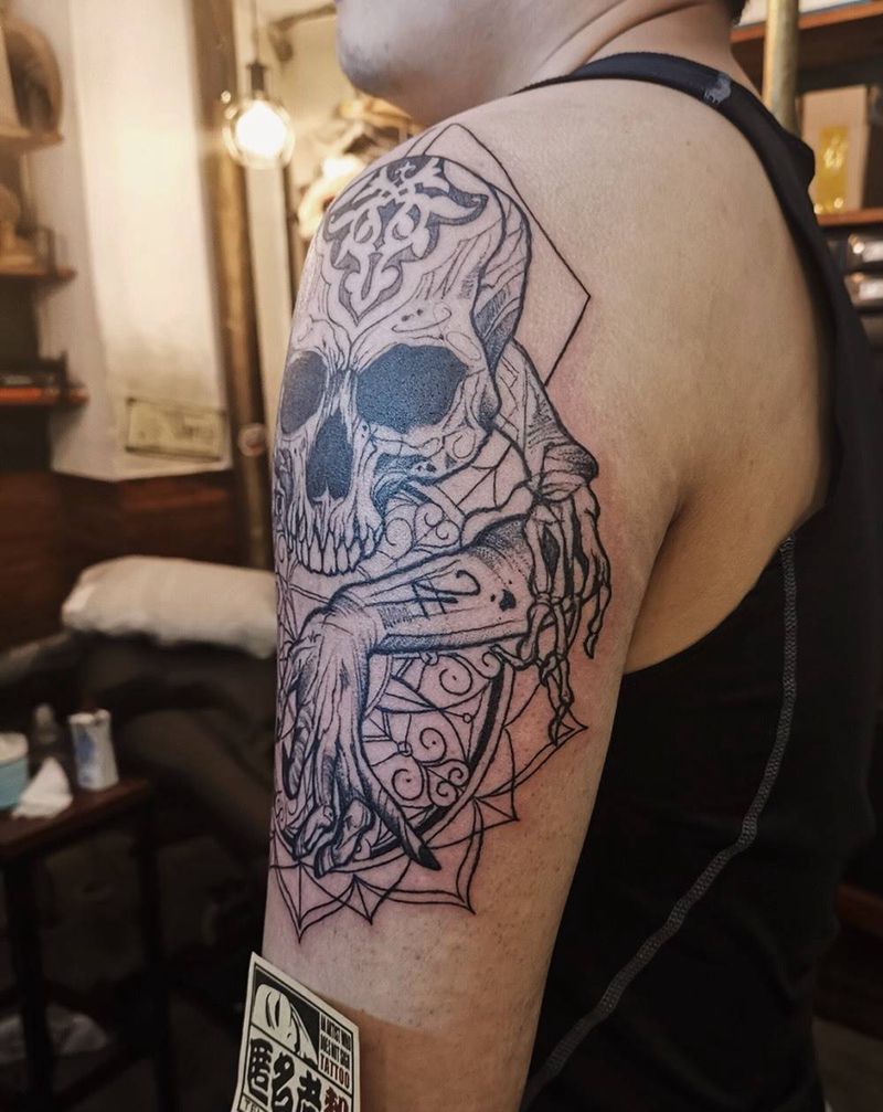 当前位置: 首页 >广东省广州市纹身店-广州匿名者刺青纹身图案>大臂 几何 骷髅纹身图片