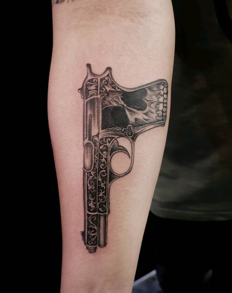 当前位置: 首页 >广东省广州市纹身店-广州匿名者刺青纹身图案>骷髅 手枪纹身图片