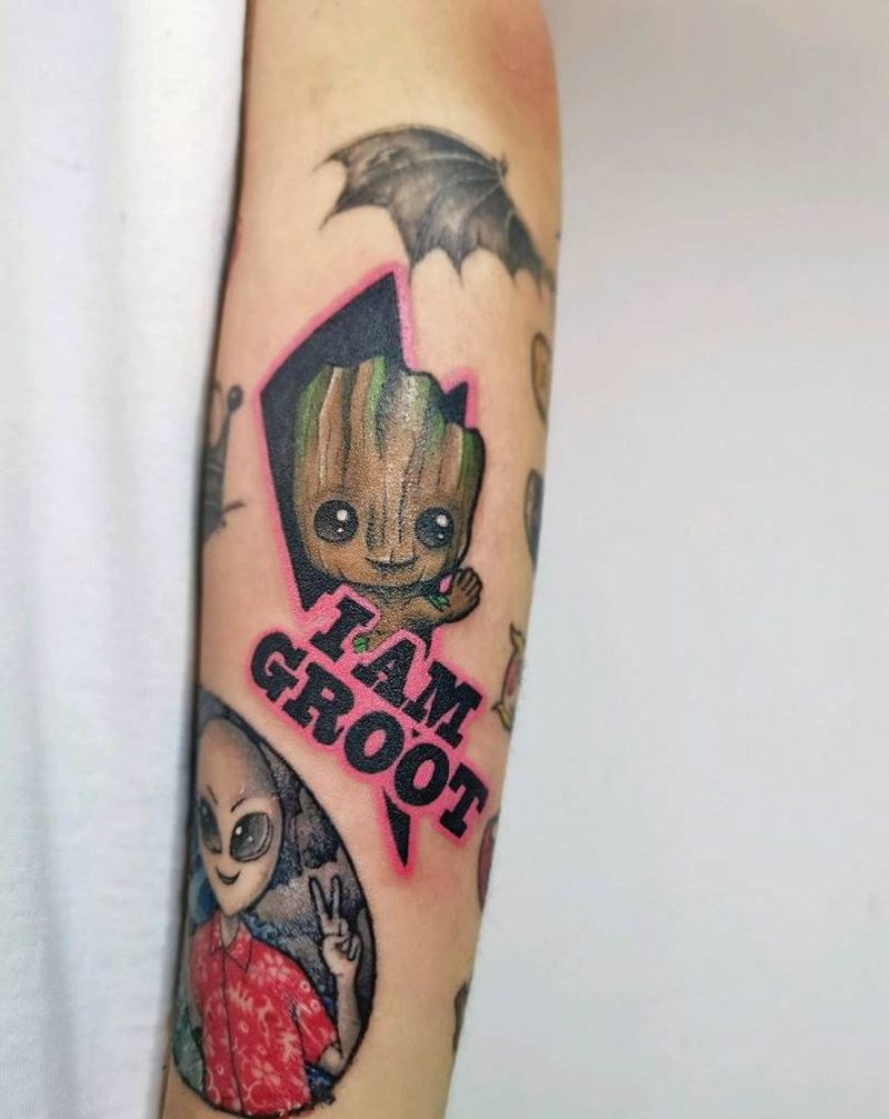 当前位置: 首页 >广东省广州市纹身店-广州匿名者刺青纹身图案>漫威 格鲁特纹身图片_手臂New School纹身图案