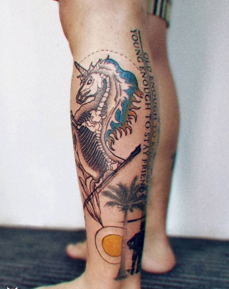 混搭 独角兽纹身图片_腿部点刺几何混搭纹身图案