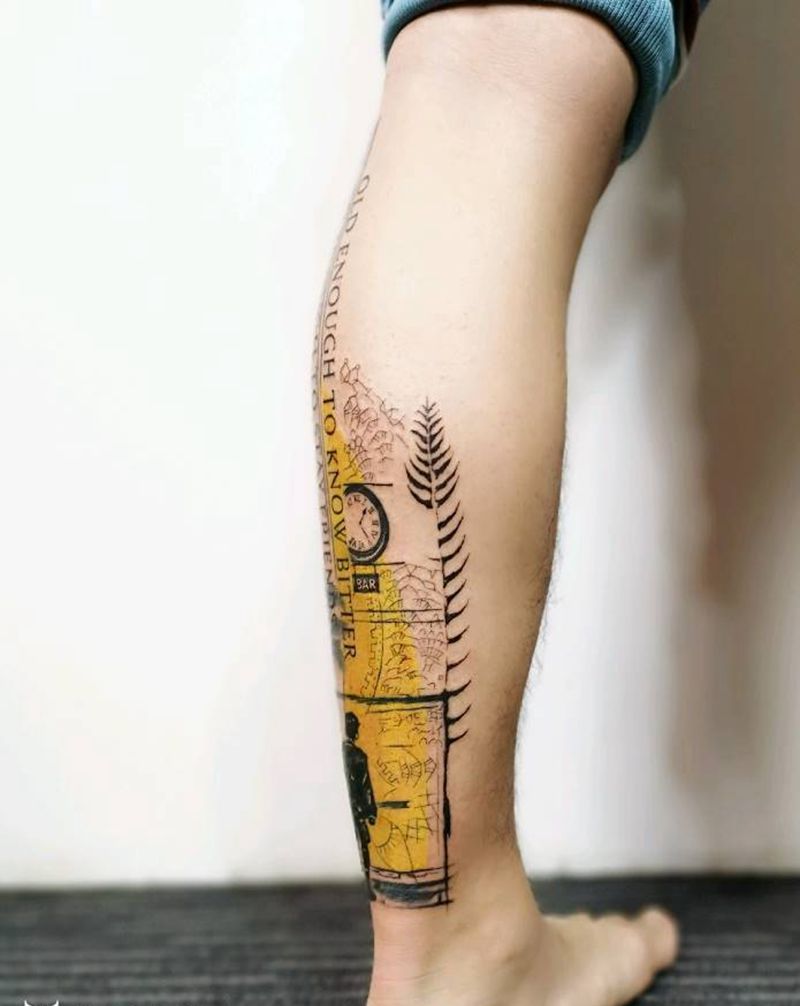 几何 构成感纹身图片_腿部几何涂鸦纹身图案