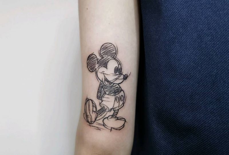 速写 米奇纹身图片_手臂速写动漫迪士尼纹身图案