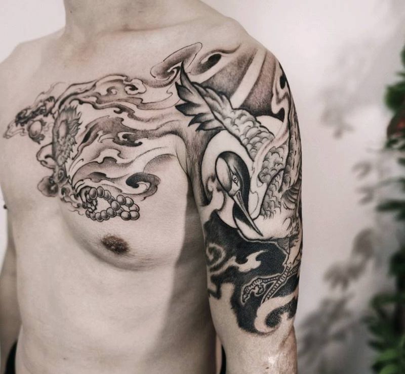 当前位置: 首页 >广东省广州市纹身店-广州匿名者刺青纹身图案>包胸 鹤 达摩纹身图片_胸部手臂新传统鹤达摩纹身图案