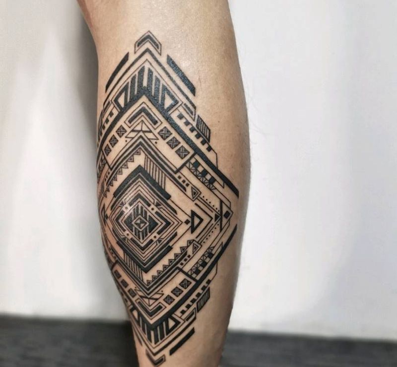 扎瞎眼系列 几何图腾纹身图片_腿部图腾纹身图案