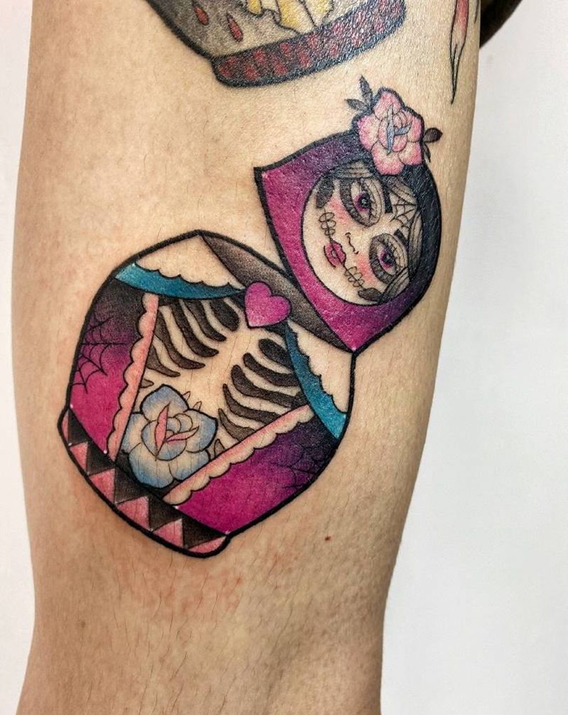 School 俄罗斯套娃纹身图片_腿部Old School俄罗斯套娃纹身图案