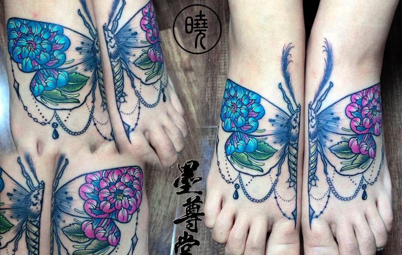 当前位置: 首页 >广东省广州市纹身店-脱白计划·纹身·脏辫工作室纹身图案>脚背菊花飞蛾纹身图片