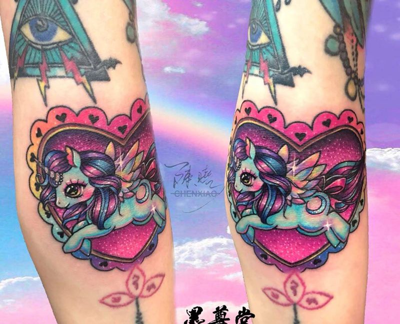 当前位置: 首页 >广东省广州市纹身店-脱白计划·纹身·脏辫工作室纹身图案>独角兽纹身图片_手部手臂独角兽彩色纹身图案