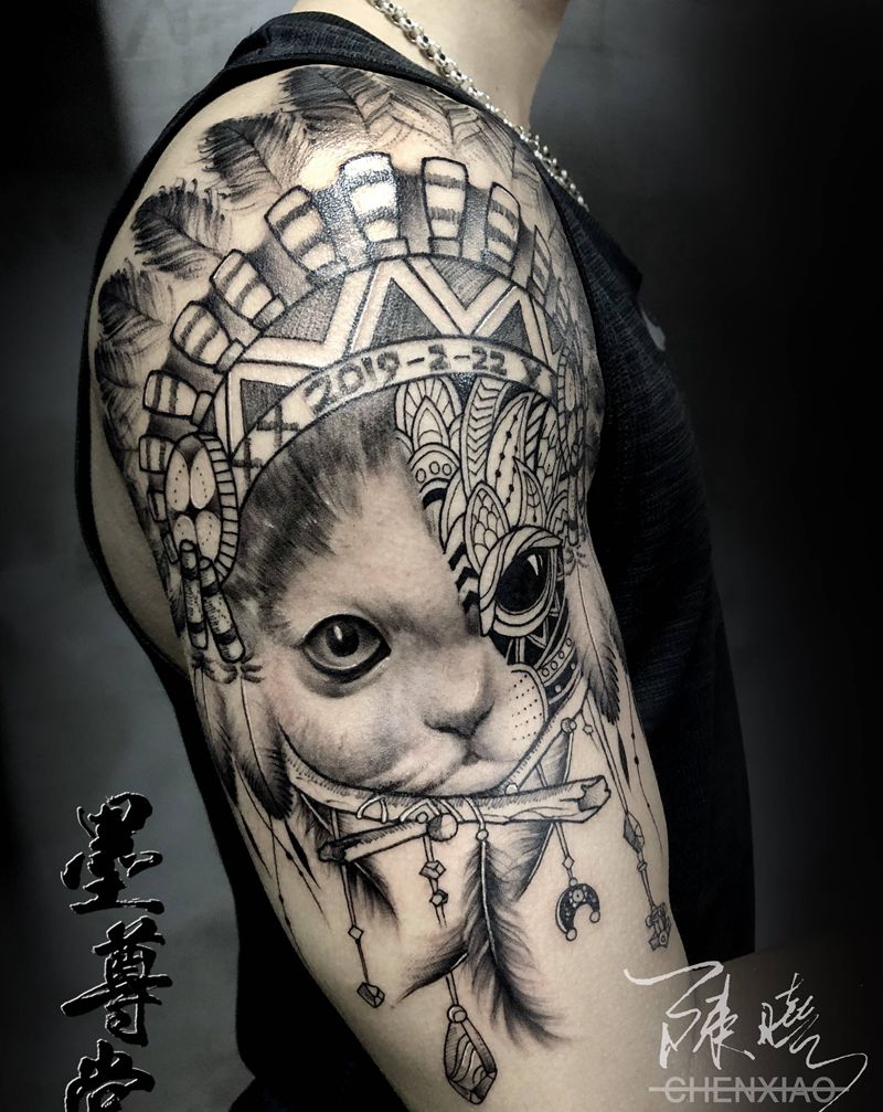 当前位置: 首页 >广东省广州市纹身店-脱白计划·纹身·脏辫工作室纹身图案>印第安猫纹身图片_手臂几何图腾纹身图案