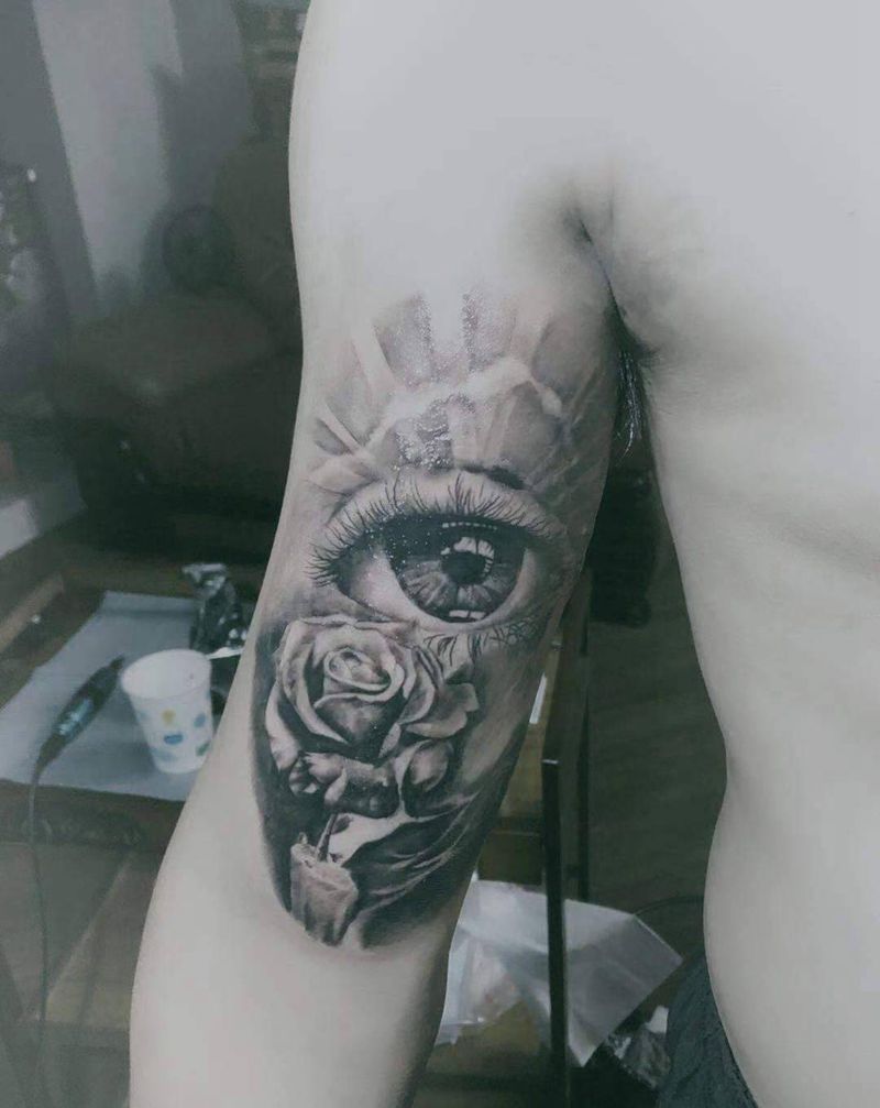 眼睛玫瑰纹身图片_手臂欧美写实纹身图案