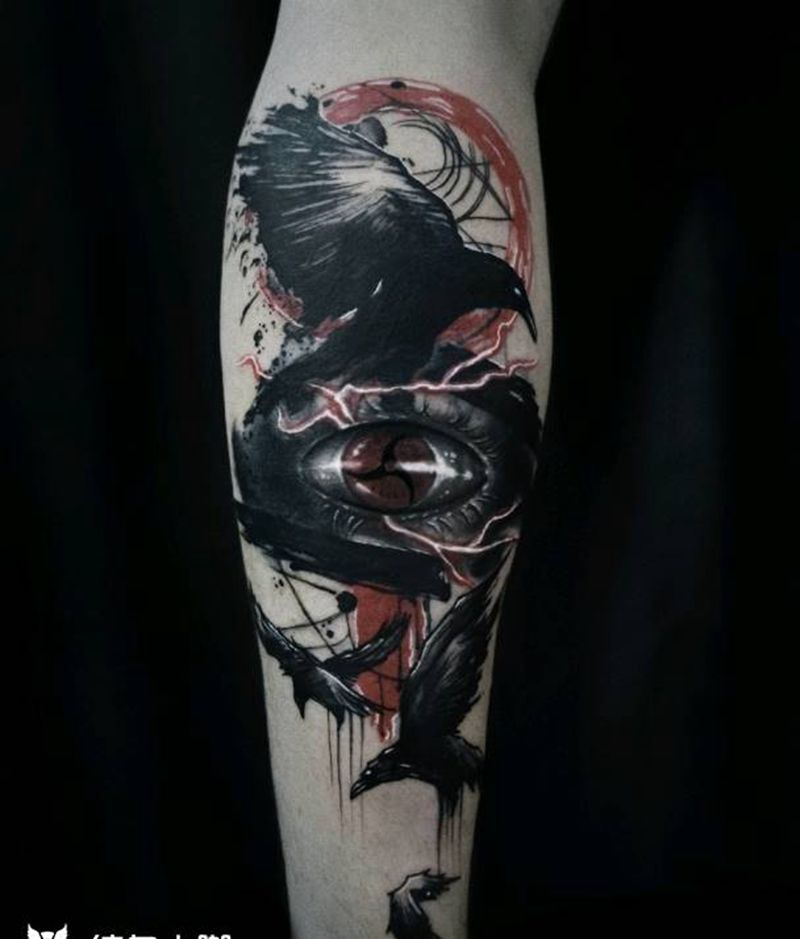 写轮眼 火影忍者 专业遮盖修改纹身图片_腿部欧美写实火影写轮眼纹身图案